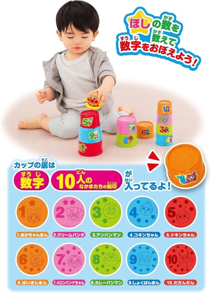 セット内容は、アンパンマン人形、1~10のカップ 各1個です。