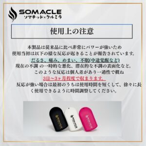 【CLEMIRA/クルミラ】の使用開始後、まれに「だるさが増す」「眠気を感じる」といった、一時的に不調と感じるような変化を体感する方もいらっしゃいます。これは、体が変化に適応しようとする過程で起こる一時的なものと捉えられますが、症状が続く場合は使用を中止し、必要に応じて専門家にご相談ください。前述の通り、クルミラは健康雑貨であり、体質や体調には個人差があるため、体感や反応も人それぞれであることをご理解いただく必要があります。不安を感じる場合は、利用を控えるか、使用量を調整することが重要です。