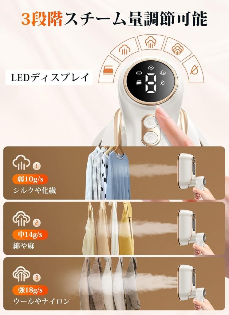 スチーム調節 3段階で素材に合わせて調整可能