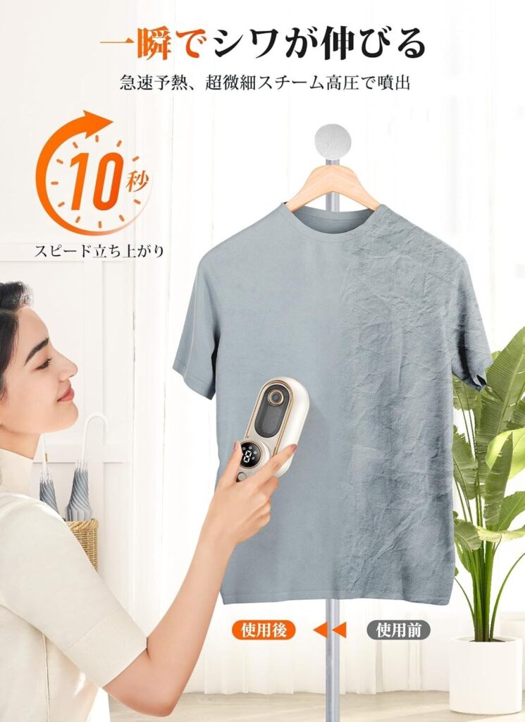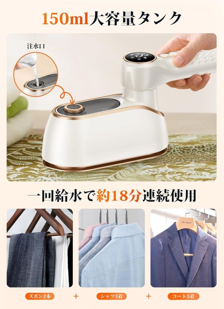 「立ち上がりが早くて忙しい朝に助かる!」「軽くて腕が疲れないし、旅行にも便利」「見た目がシンプルで部屋に馴染む」「デリケート素材にも安心して使える」「小さいのにパワフル!デニムもピシッと仕上がる」「子どもの服やカーテンにも使えて便利」という口コミもあります。