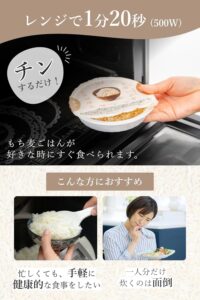 前述の通り、手軽にレンジで調理できるため、栄養価の高いもち麦ごはんを毎日の食卓に簡単に取り入れられる点が、継続して購入するリピーターが多い理由の一つです。 ![]()
