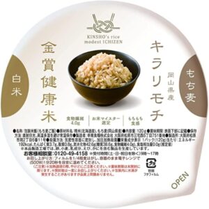 この商品は、金賞健康米50%ともち麦の一種である岡山県産「キラリモチ」50%のブレンドです。