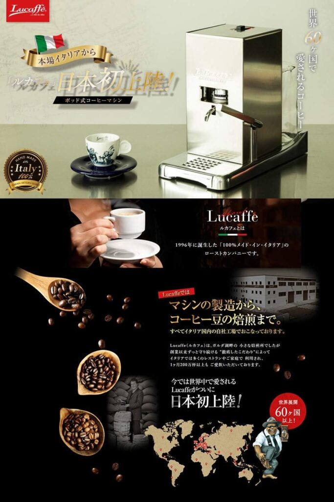 ルカフェ(Lucaffe)は、高品質なコーヒーマシンとカフェポッドを提供するブランドです。