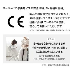 安全性と安定性 ヨーロッパの安全基準「EN規格」に合格しており、耐荷重は130kgとしっかりした作りです。5点式ベルトで赤ちゃんのずり落ちを防ぎ、脚部の強力な滑り止めで安定感があります。