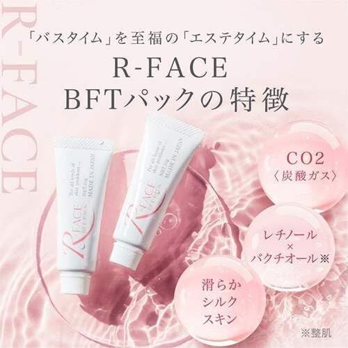 【R-FACE BFTパック】は、炭酸ガスケアを簡単に楽しめるスキンケアアイテムで、その主な成分には、炭酸ガスを含む特殊なジェルや、美容成分が配合されています。