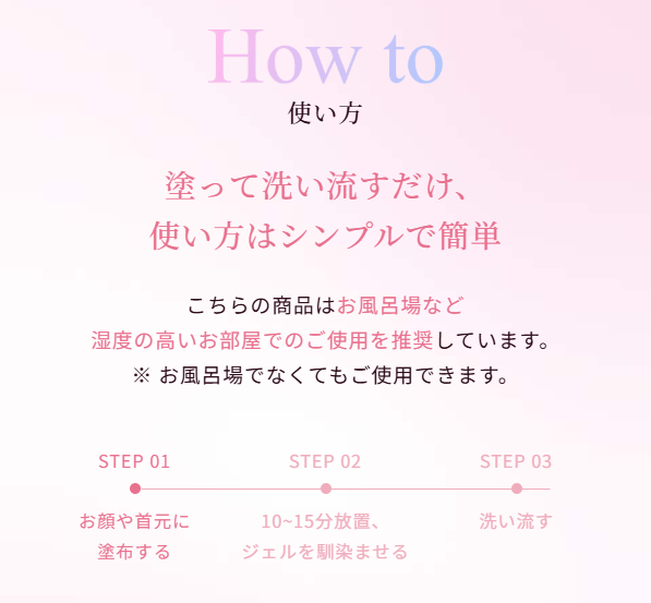 おうちだとお風呂場が最適な場所になります。シャワーや湯船に浸かっている間にケアが完了します。お風呂場以外の場所でもご使用可能です。