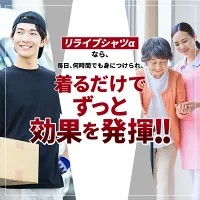 リライブシャツα 通常のリライブシャツに比べて、トルマリン(鉱石)の配合量が1.5倍に増量されており、血行促進やコリの緩和効果がより期待できるモデル。